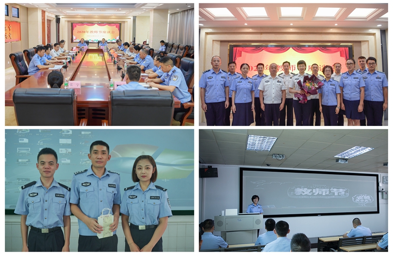 精心組織安排,濃厚節日氛圍。校區充分結合自身實際,制定工作方案,組織各單位開展了形式多樣、內容豐富、主題鮮明的慶祝活動。校區黨委為在學校跟學培訓的老師送上慰問花籃和節日祝福,跟班學習的教師們共同參加了所在學院的慶祝活動。綜合辦公室、政治處、總務處、培訓部組織觀看愛國主義電影,弘揚愛國精神、激發奮斗熱情,引導教職工積極投身公安教育事業。教育訓練處開展教學質量評估評選表彰,激勵廣大教師深化教學改革,提升教育質量。基礎部組織心理行為拓展訓練,強化團隊協作,增進溝通交流。移民管理學院(廣州)為教師拍攝個人藝術照片,組織“老師您辛苦了”主題快閃活動;警務指揮學院(廣州)制作節日賀卡、編輯祝福短信,表達真摯祝愿、加強情感溝通、增進師生情誼,積極營造出了尊師重教、崇智尚學的濃厚氛圍。