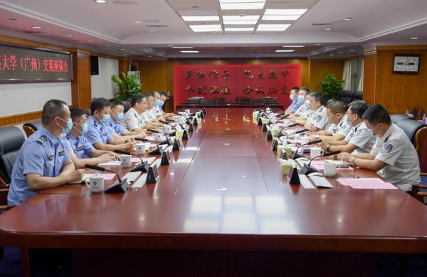 座談會上,廣州校區潘慈平書記、劉金廣主任對廣州總站長期以來對校區建設發展的大力支持表示感謝,高度稱贊了總站在維護國家安全、服務地方經濟社會發展和抗擊新冠疫情等工作中的突出貢獻。校區潘慈平書記、劉金廣主任介紹了學校服務面向、發展定位、辦學特色和校區改革發展等情況,就進一步加強與廣州總站的交流合作,共同推動邊檢科技創新和移民管理事業發展,助力粵港澳大灣區建設等方面與朱建敏政委交流了意見。同時,希望雙方能根據國家移民管理局與警察大學全面戰略合作框架協議精神,發揮好地域優勢,加強對接細化,深化實施改革強警、科技興警戰略,積極構建校區與總站戰訓一體、育用銜接、合力育人機制,努力為公安教育事業和移民管理工作做出新的更大貢獻。