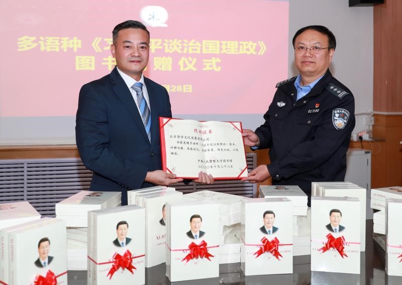 余富文總經理致辭表示,習近平新時代中國特色社會主義思想是馬克思主義中國化的最新成果,是黨和人民實踐經驗和集體智慧的結晶,閃耀著馬克思主義真理光輝,對黨和國家事業開創新局面發揮了重要指引作用,也必將引領中華民族走向更加輝煌的未來。《習近平談治國理政》系列圖書是國際社會了解中國的重要窗口,也是尋找中國問題答案的一把鑰匙。公司此次向警察大學的捐贈,希望對學校的思政和外警培訓工作有所支持,衷心祝愿警察大學在新時代的建設發展中,勇攀高峰、再創輝煌。