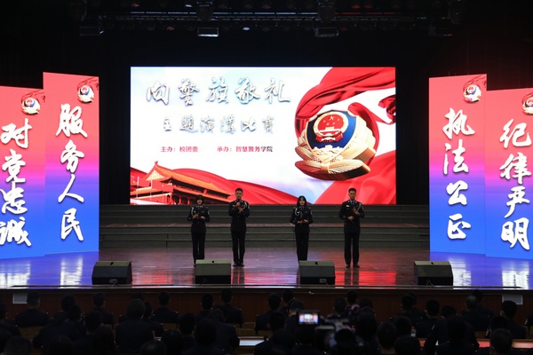為認真學習宣傳貫徹習近平總書記在中國人民警察隊伍授旗儀式上的重要訓詞精神,落實公安部和學校黨委關于“堅持政治建警、全面從嚴治警”教育整頓工作的部署要求,11月11日,由學校團委主辦,智慧警務學院承辦的“向警旗敬禮”主題演講比賽決賽于學校禮堂成功舉辦,校長助理楊英明、各學院團委書記出席比賽。