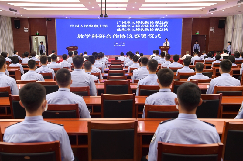 廣州總站郭慶祝總站長、珠海總站涂林總站長、深圳總站陳宏軍副總站長分別介紹各自總站的基本情況,對“校站合作”的廣闊前景表達了美好祝愿。他們表示,中國人民警察大學是國內移民與出入境領域辦學歷史最悠久、學科專業最齊全、人才培養體系最完整、教學科研成果最顯著的高等學府,正式建立教學科研合作關系,是雙方構筑站校合作新格局、實現人才共建共育的應有之義、必然之舉,必將有力推動戰略合作向更高層次發展,為國家培養更多高素質創新型出入境管理專業人才,進一步促進雙方理論和實踐的深度融合與再提升,助力雙方更好地發揮職能作用,為服務國家安全戰略和粵港澳大灣區建設作出新的更大貢獻。