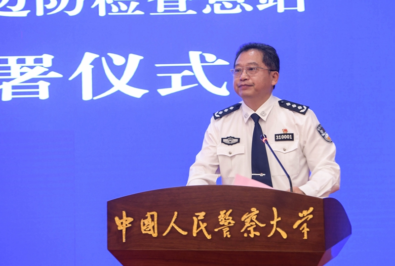 馬金旗代表警察大學黨委對三個總站長期以來對警察大學的大力支持,總站領導高瞻遠矚的設計和親力親為的推動表示衷心感謝。他指出,合作協議的簽署是落實公安部黨委、國家移民管理局黨組關于校局合作辦學戰略部署的重要舉措,是警察大學與三個總站攜手共進、共育人才的新起點,衷心期待雙方的合作結出累累碩果,在共建、共治、共享中實現高質量的發展。馬金旗向參會人員介紹了學校服務面向、發展定位、專業設置和辦學特色,就進一步推動未來的合作提出四點建議:一是提高站位,把服務國家總體外交和高質量改革開放作為根本目標。移民和出入境管理工作與國家總體外交、改革開放大局息息相關,雙方的合作要樹立國家利益的高站位,增強責任感和使命感,以新擔當新作為,推動國家改革開放和增長模式的質量變革、效率變革、動力變革。二是胸懷大局,把落實國家總體安全觀、維護口岸邊境安全作為核心任務。要緊緊圍繞核心任務開展國際移民形勢研判、國家和口岸安全形勢評估、移民和出入境制度政策研究、口岸管理和勤務模式改革創新等工作,通過雙方的努力,使人員出入境更加便利,通關效率更加順暢,口岸和邊境地區的安全更加牢固。三是聚焦關鍵,把推動落實大灣區戰略和警務模式創新作為重要抓手。要緊密對接粵港澳大灣區建設國家戰略,緊扣警務模式創新,組織研究團隊,集中開展理論與實戰研究攻關,培育產出更多兼具實戰指導性和工作前瞻性的科研成果,為推進“平安灣區”建設發揮重要作用,為移民和出入境警務模式改革提供借鑒示范。四是精準對標,把建設省部級示范基地作為努力方向。要圍繞協議內容,精準對接教育部、公安部建設實踐教學基地的規范和標準,科學謀劃,深化協同,全力保障,積極開展高質量、高效率的合作,努力打造成為警察大學與移民和出入境管理機構的合作樣板,打造成省部級示范基地,對公安高等教育乃至全國高等教育,起到示范引領作用。