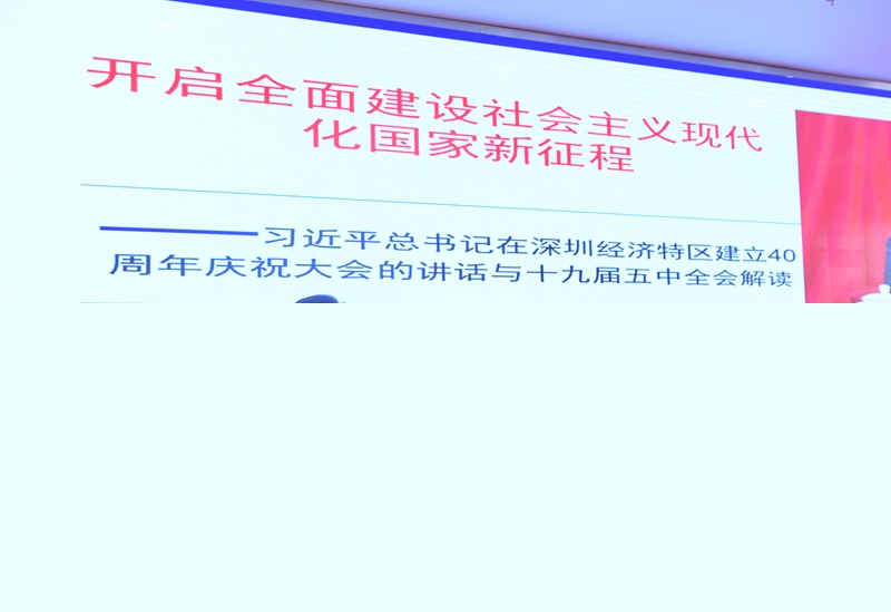 為深入學(xué)習(xí)宣傳貫徹黨的十九屆五中全會(huì)精神和習(xí)近平總書(shū)記在深圳經(jīng)濟(jì)特區(qū)建立40周年慶祝大會(huì)上的講話精神,11月23日下午,廣州校區(qū)召開(kāi)黨委理論學(xué)習(xí)中心組學(xué)習(xí)擴(kuò)大會(huì),邀請(qǐng)廣東省委宣講團(tuán)成員、廣東省政府發(fā)展研究中心副主任譚炳才來(lái)校作專(zhuān)題報(bào)告。學(xué)習(xí)會(huì)由學(xué)校黨委委員、校區(qū)黨委書(shū)記潘慈平同志主持,全體在校教職工參加了學(xué)習(xí)。