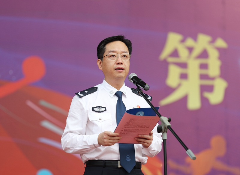 校區潘慈平書記致開幕辭,他代表校區黨委、全體教職員工向所有參加本次運動會的運動員、裁判員表示誠摯的問候,向為籌備此次運動會付出辛勤努力的工作人員表示衷心的感謝。潘書記充分肯定了今年以來校區在國內合作辦學、智慧警務建設、無人機教學培訓、校園規劃建設等各個領域邁出了堅實的步伐、取得了可喜的成績,并代表校區黨委向堅守在教育管理一線,戮力同心、恪盡職守的全體師生表示由衷的感謝。潘書記指出,校區歷來重視文化和體育工作,大力推進文化育警、文化強警戰略,開展了形式多樣、健康向上、格調高雅的校園文化和體育活動。一年一度的運動會既是校區群眾性體育活動開展成效的一次集中檢閱,也是校區教職工精神風貌和綜合素質的一次集中展示,更是大家歡聚一堂、增進交流、公平競爭、團結拼搏的一次盛會。他希望廣大師生團結一致、齊心協力,賡續優良傳統、永葆忠誠警魂、擔當強校重任,把本屆運動會辦成一屆開拓向前、續寫忠誠的體育盛會,奮力開創廣州校區更加美好的明天。
