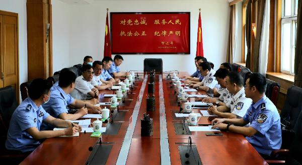 5月19日,江西警察學院院長袁志堅、副院長董洛民一行7人來校調研交流,校長馬金旗、副校長杜旭宇與袁志堅院長一行開展座談交流。