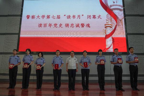 閉幕式上,回顧了活動期間的精彩場景。本屆讀書月設立了黨史學習教育主題閱讀專區,展出習近平總書記系列圖書、四史類書籍1000余種;開展了“黨史百年天天學”主題講座21天打卡,全校1625人參與,在線提交心得38萬余字;舉辦了“黨旗下的警大夢”征文比賽,征集作品236份;評選了60名2020年度優秀讀者;組織了“真人圖書館”、“讀書沙龍”活動,營造了書香警大的閱讀文化氛圍。閉幕式還邀請了2名“優秀讀者”代表和4名征文比賽獲獎代表做交流發言,暢談了自己讀書學習的心得感悟,抒發了對國家、對警大的熱愛以及勵志報國、矢志從警的志向和情懷。隨后,杜副校長為獲獎代表頒發了獲獎證書。