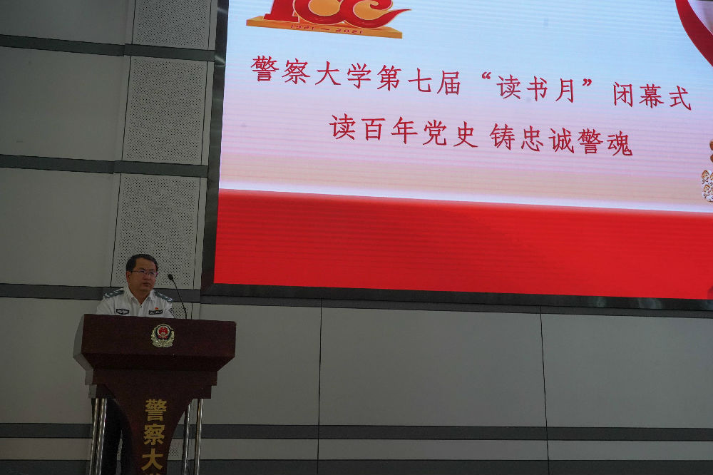最后,杜副校長在總結講話中指出2014至2021年,“全民閱讀”連續八年被寫入政府工作報告,全民閱讀成為國家治理體系的重要內容。圖書館連續舉辦七屆“讀書月”活動,圍繞“文化育人、以文化人”的目標,在閱讀推廣中融入政治教育、道德教育、思想教育和知識教育,以符合警大特色的閱讀文化來引導人、感化人、塑造人,既打造了“讀書月”品牌活動,也是我校積極響應國家“全民閱讀”號召的具體舉措。本屆“讀書月”以“讀百年黨史鑄忠誠警魂”為主題,注重價值引領和活動實效,引導同學們在閱讀、思考、寫作的過程中涵養家國情懷,培養讀書習慣,有效地發揮了文化育人導向作用,營造了濃郁的黨史學習氛圍。他希望同學們珍惜在校時光,多讀書、讀好書,讓自己的學習生活多一些文化氣韻和筆墨書香,在閱讀中求知、進步、成長。他要求圖書館要進一步思考自身的價值和使命,不斷提升服務質量、創新服務形式,更好地發揮文化育人職責和使命。他寄語同學們,把閱讀當成一種習慣、一種信仰,在濃郁的書香中堅定理想信念、傳承紅色基因,砥礪新時代開拓進取、接續奮斗的昂揚志氣,以優異成績迎接建黨一百周年華誕!