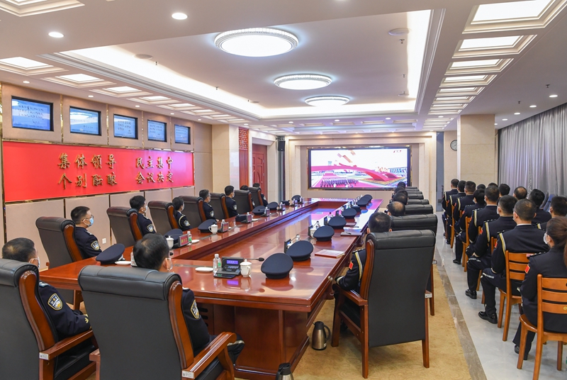 校區(qū)潘慈平書(shū)記在儀式上指出,站在“兩個(gè)一百年”歷史交匯點(diǎn)上,廣大師生必須要永葆革命精神、乘勢(shì)而上、接續(xù)奮斗。要傳承紅色基因,賡續(xù)紅色血脈;筑牢精神基石,堅(jiān)定理想信念;感悟初心使命,鑄牢忠誠(chéng)警魂;砥礪擔(dān)當(dāng)精神,開(kāi)辟發(fā)展新局,切實(shí)從黨的百年奮斗征程中汲取智慧和力量。祝福偉大的共產(chǎn)黨青春永駐,祝福偉大的祖國(guó)繁榮昌盛,祝愿學(xué)校的未來(lái)更加美好。校區(qū)劉金廣主任在主持儀式時(shí)指出,一代人有一代人的使命,一代人有一代人的擔(dān)當(dāng),歷史選擇我們承擔(dān)校區(qū)建設(shè)發(fā)展的重任,我們責(zé)無(wú)旁貸。旗幟就是方向,誓詞就是號(hào)令,全體師生要按照公安部黨委、學(xué)校黨委部署要求,牢記初心使命,堅(jiān)定理想信念,拼搏進(jìn)取,不懈奮斗,在校區(qū)建設(shè)發(fā)展的新征程上做出新的更大的貢獻(xiàn)。