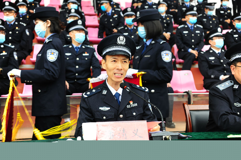 最后,牟玉昌書記作了重要講話,充分肯定新訓成果,對同學們的成長蛻變及取得的佳績表示熱烈祝賀,希望同學們把新訓中積淀的好思想、好作風、好精神堅持下去,以“越是艱險越向前”的英雄氣概,以“敢教日月換新天”的昂揚斗志,步入警大生活新起點。