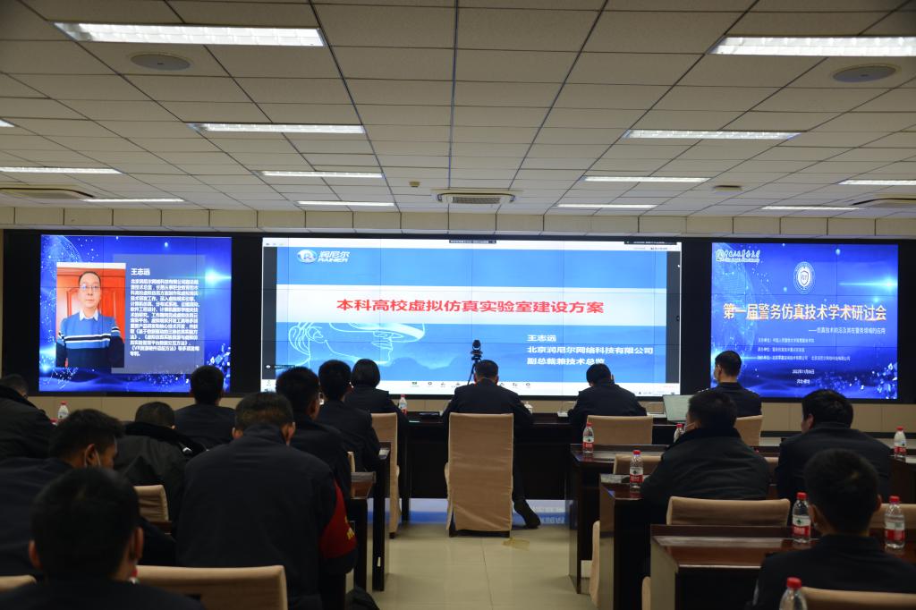 此次會議由智慧警務學院主辦,公安部重點實驗室承辦,北京零重空間技術有限公司和北京潤尼爾網絡科技有限公司聯合協辦,會議主題為“仿真技術前沿及其在警務領域的應用”。來自北京航空航天大學、國防科技大學、中國刑事警察學院、北京警察學院、南京森林警察學院、鐵道警察學院、陜西警察學院、營口市公安局、華信咨詢設計研究院、天津杰聯科技發展有限公司等10余家單位的專家學者與警察大學200名師生,通過線上線下相結合的方式參加了會議。警察大學副校長吳立志出席會議并致辭,會議由智慧警務學院黨委書記王連鵬主持。