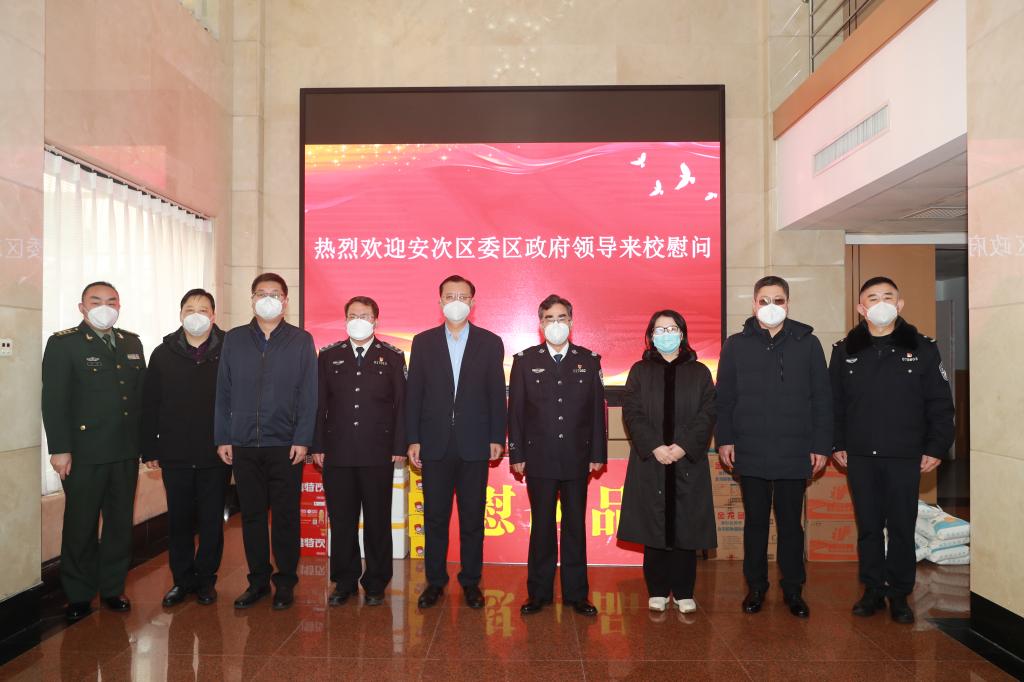 1月13日,廊坊市安次區(qū)委書記朱文軍、區(qū)委副書記、區(qū)長(zhǎng)禹薔、區(qū)委副書記連宇、區(qū)人大常委會(huì)主任唐福貴、區(qū)政協(xié)主席王俊杰等區(qū)四套班子領(lǐng)導(dǎo)來(lái)校進(jìn)行走訪慰問(wèn)。學(xué)校校長(zhǎng)馬金旗、副校長(zhǎng)杜旭宇等會(huì)見了來(lái)校慰問(wèn)人員。