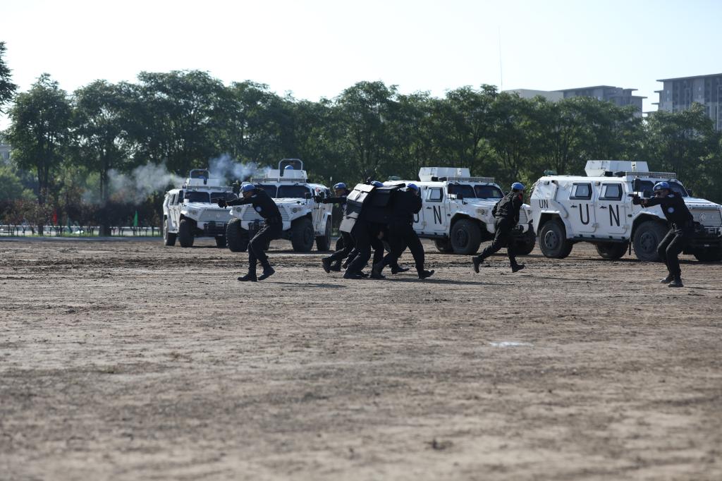 本次研討會議經(jīng)公安部批準(zhǔn),由聯(lián)合國和平行動部警察司主辦,中國維和警察培訓(xùn)中心承辦,會期4天。來自聯(lián)合國總部、9個聯(lián)合國任務(wù)區(qū)與23個聯(lián)合國安理會主要出警國的39位高級官員與維和專家參與研討。開班典禮前,費(fèi)薩爾一行和與會代表共同觀摩了正在校集訓(xùn)的公安部特勤局國際維和總隊(duì)行動能力綜合演練。