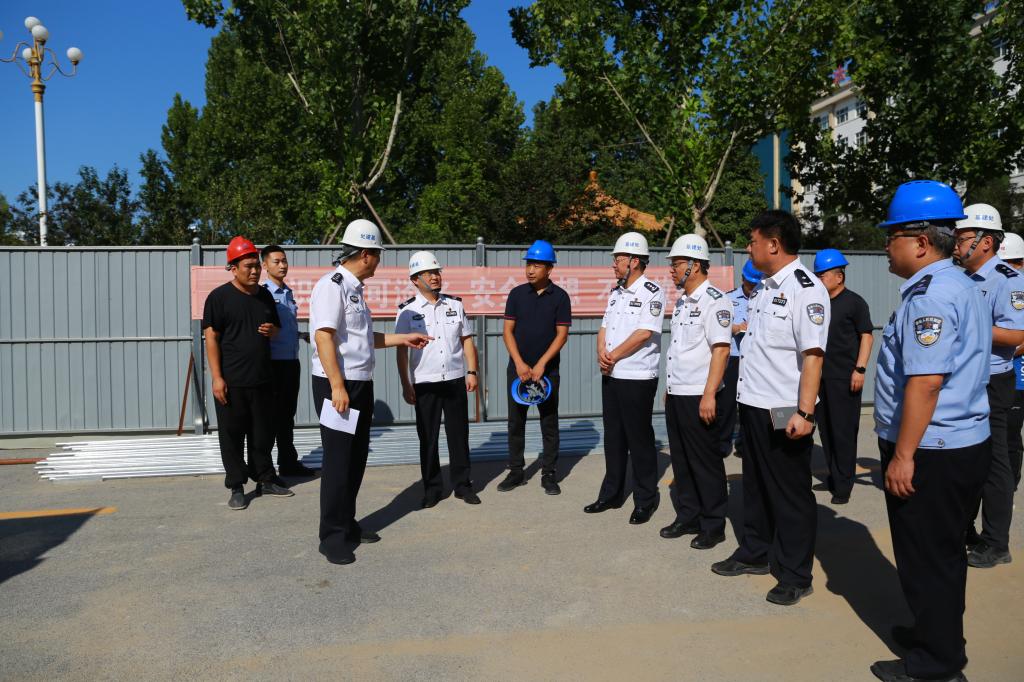 8月23日上午,牟玉昌書記帶領(lǐng)相關(guān)處室,實(shí)地檢查了禮堂、圖書館、綜合服務(wù)樓、洗浴中心、訓(xùn)練場(chǎng)等在建工程施工情況,深入走訪學(xué)生教室、宿舍、食堂、超市,詳細(xì)了解學(xué)生返校報(bào)到、新生被裝采購(gòu)等開(kāi)學(xué)準(zhǔn)備工作。校領(lǐng)導(dǎo)張立勛、閆勝志、劉義祥、王震陪同檢查。