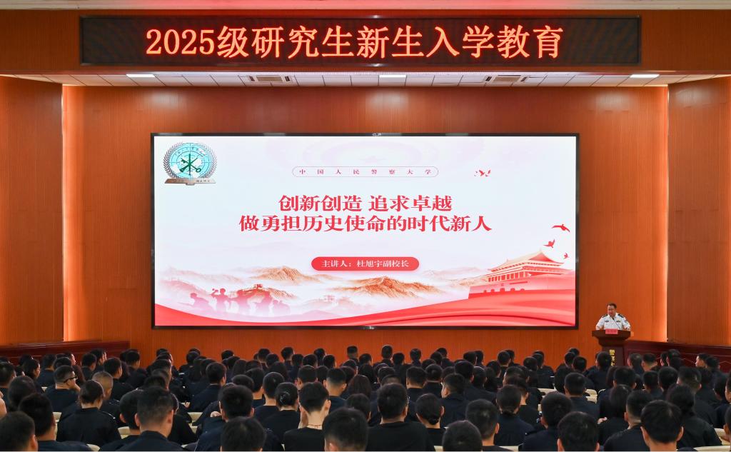 杜旭宇勉勵(lì)全體研究生,要鑄牢忠誠(chéng)警魂、勇?lián)鷷r(shí)代使命,要堅(jiān)持創(chuàng)新創(chuàng)造、勇攀科研高峰,要矢志追求卓越、鍛造棟梁之才,通過(guò)三年研究生學(xué)習(xí),積蓄逐夢(mèng)力量,努力成長(zhǎng)為時(shí)代拔尖創(chuàng)新人才,為推進(jìn)公安工作現(xiàn)代化貢獻(xiàn)青春智慧和力量。
