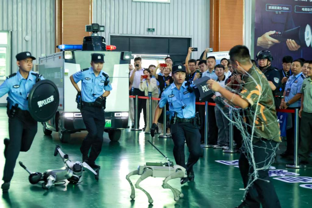展會現(xiàn)場,警用機器狗、無人排爆車、人形機器人、無人機防控等智慧化裝備紛紛亮相。展品涵蓋了人工智能、安全防護器材、無人機反制設備、應急救援、安檢排爆偵查取證設備及特種車輛等一批專、精、特、新的公共安全技術和警用技術裝備,展現(xiàn)了守護平安的科技力量。警、校、企之間進行了面對面深入交流,促進了公安機關、公安院校和裝備企業(yè)在“教學研練戰(zhàn)”方面的深入互通。