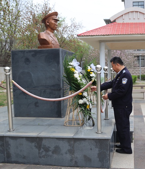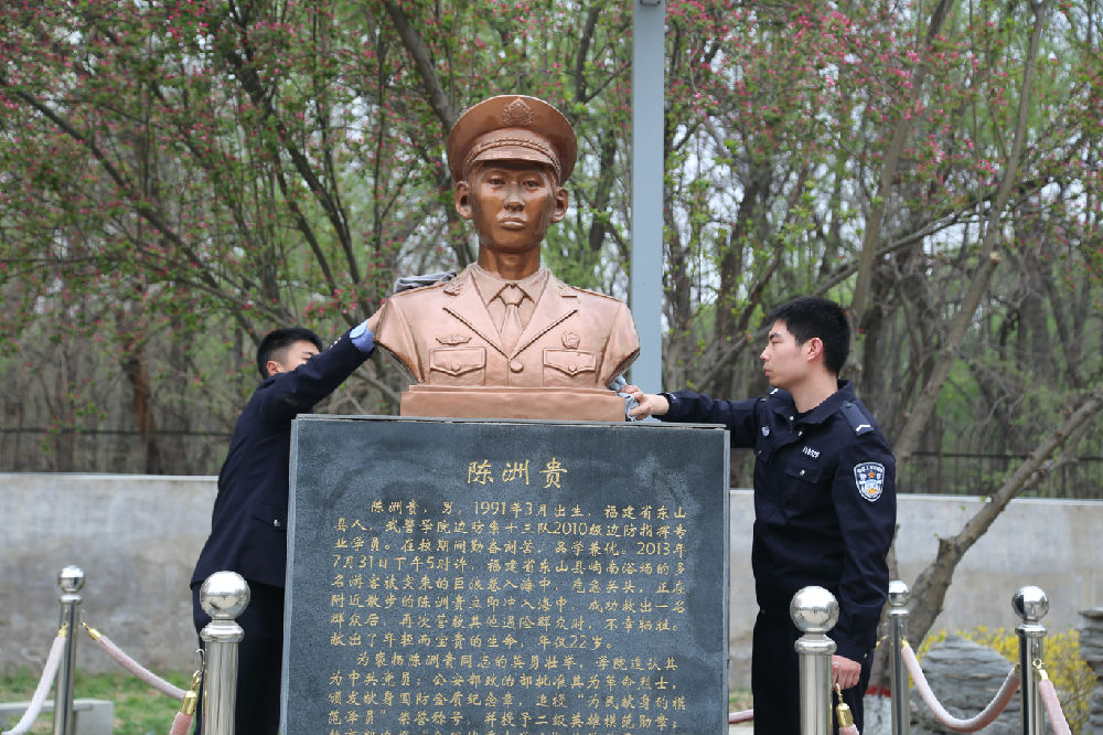 在陳洲貴烈士雕像前,全體人員列隊肅立默哀,黨員代表向陳洲貴烈士敬獻了花籃,研究生院王勇副院長、張冀雷大隊長參加了此次活動。綜合辦公室招生培養辦公室聯合黨支部書記周軍猛同志宣讀了陳洲貴烈士的先進事跡,號召全體同志學習陳洲貴同志忠誠于黨、服務人民、舍生忘死的崇高精神,時刻牢記為人民服務的宗旨,時刻牢記共產黨員的責任和義務,自覺踐行黨員先鋒模范作用。隨后,黨員代表組織清掃了烈士塑像。