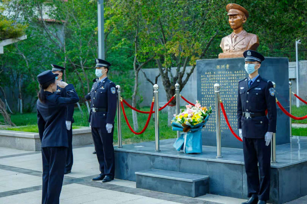 在警察大學建校40周年之際,陳洲貴烈士的妹妹、2018年畢業(yè)校友陳一秀同志返校參加建校40年活動,期間到陳洲貴烈士雕像前敬獻鮮花,緬懷陳洲貴烈士。