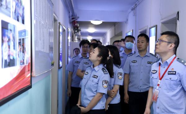 5月25日下午,在進修學院學習的公安部晉升三級警督警銜民警政治培訓班學員到移民管理學院學生大隊進行參觀交流。