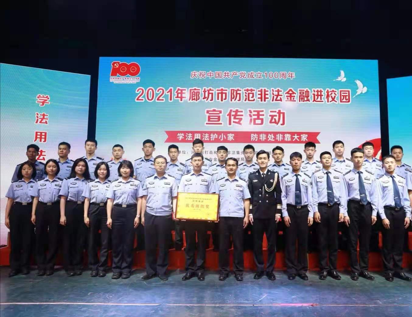 此次宣傳活動由河北省打擊和處置非法集資工作領導小組辦公室、廊坊市地方金融監督管理局主辦,警察大學等6所高校參與,會場設在北華航天工業學院西校區大禮堂,活動以宣講法律法規、情景劇、歌唱、演講等形式,號召一起防范和打擊非法集資,同時也是一次黨史學習教育活動。接到學校通知后,學院領導高度重視,要求精心組織,移民管理三隊遴選出26名政治素質高、綜合能力強的學生代表學校參加此次宣傳活動,該隊教導員于志剛帶隊。