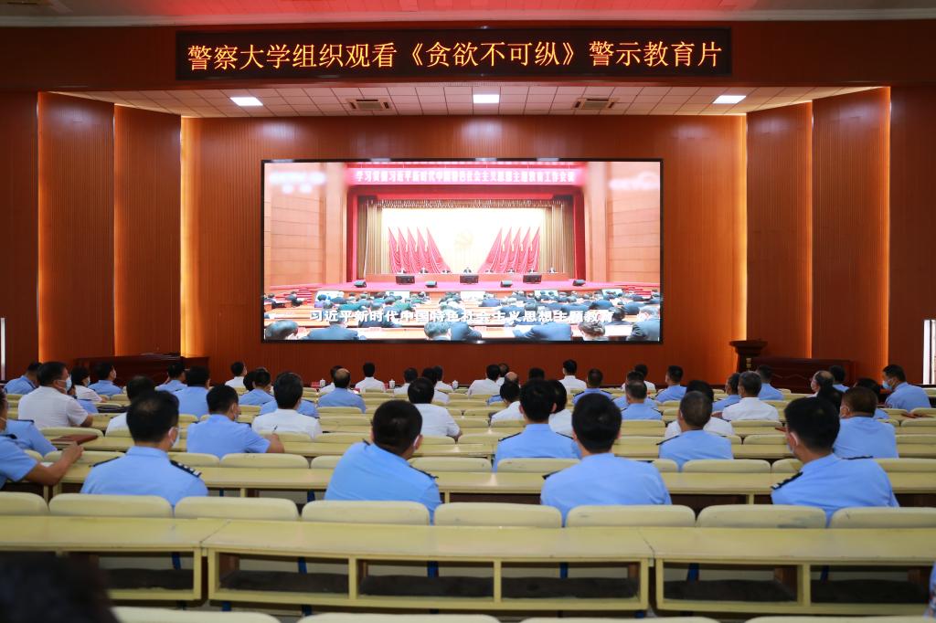 為在主題教育、紀檢干部隊伍教育整頓、干部隊伍教育整頓等工作中深化警示教育,9月14日下午,警察大學組織觀看《貪欲不可縱》警示教育片,學校副處級以上黨員干部,校、院兩級紀委委員,專兼職紀檢干部參加。