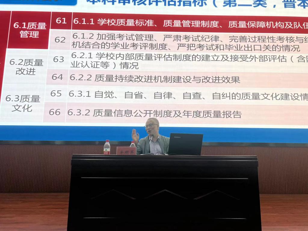 辛教授的精彩報告深入淺出,具體實際,可借鑒性強,對于推動學(xué)校內(nèi)部質(zhì)量保障體系由向“內(nèi)生型”轉(zhuǎn)變,實現(xiàn)內(nèi)涵發(fā)展、特色發(fā)展、創(chuàng)新發(fā)展提供了寶貴經(jīng)驗,為進一步做好迎評促建工作提供了有力指導(dǎo)。“強化一流本科教育與迎評促建工作專題培訓(xùn)班”期間,學(xué)校教師發(fā)展中心將持續(xù)邀請國內(nèi)高水平專家來校進行專題授課,為廣大干部教師提供更加優(yōu)質(zhì)、更高水平的教學(xué)培訓(xùn)機會和學(xué)習(xí)交流平臺。