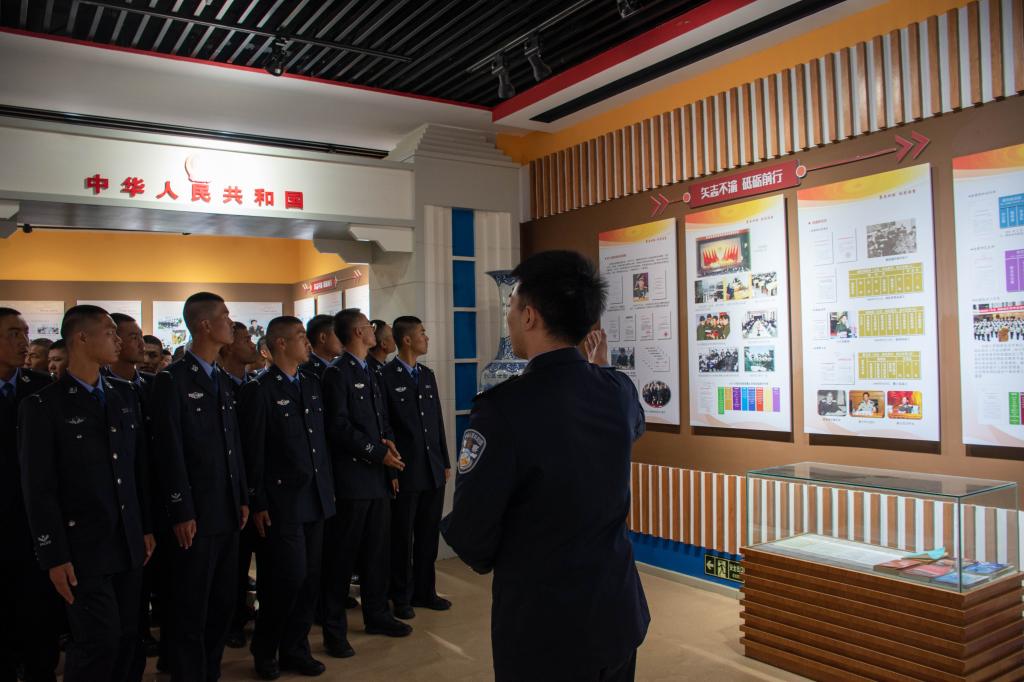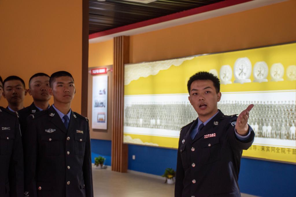 校史館分為歷史篇、成就篇,展望篇三個部分,全面展示了學校的光輝歷史和辦學成就,繪制了學校建設世界一流警察大學的宏偉圖景。在校史館解說員的講解下,同學們從一張張記錄警大歷史時刻的照片里,感受到了學校從建設到發展、從摸索到前行、從換羽新生到轉型升級的發展歷史和文化傳承;在一個個承載著光榮成就的獎狀獎杯中,了解到了學校在黨建工作、學科專業建設、科技創新、維和警察培訓等方面取得的輝煌成就;在一條條定格校園建設發展規劃的路線里,認識到了學校建設有特色、高水平、國際化的世界一流警察大學的宏偉目標。