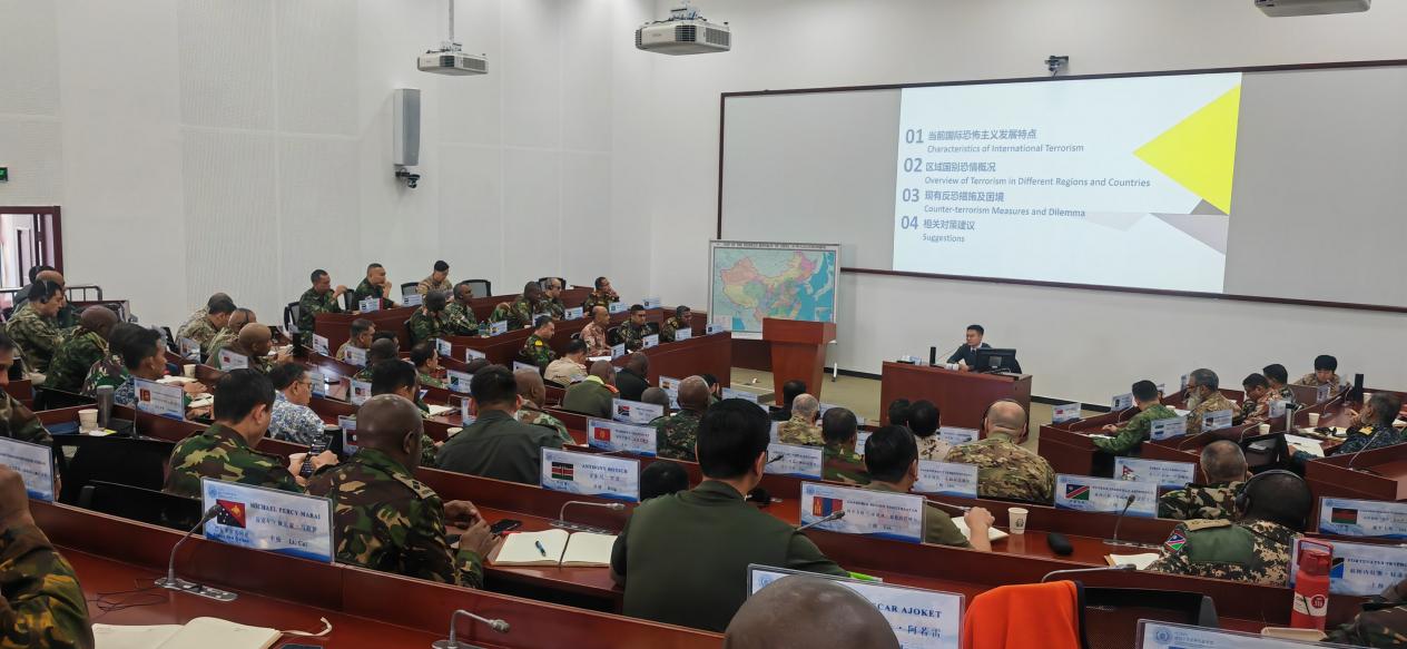 李琦副教授主要從“當前國際恐怖主義發展特點”“區域國別恐情概況”“現有反恐措施及困境”“相關對策建議”四個方面對國際恐怖主義問題進行講解。在授課過程中,李琦副教授闡述了我國在國際反恐問題中的主張并提出《全球安全倡議》《全球發展倡議》《全球文明倡議》等“中國方案”在解決恐怖主義問題中發揮的重要作用。在問答環節李琦副教授與各國軍官就反恐國際合作展開討論并達成共識。授課效果得到了學員和主辦方的好評。