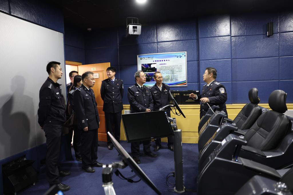 潘清義副校長主持召開座談交流會,對調(diào)研組一行來校表示熱烈歡迎,并介紹了學(xué)校建設(shè)發(fā)展總體情況。相關(guān)處室負(fù)責(zé)人和學(xué)管干部代表介紹了學(xué)校思想政治教育、警務(wù)化管理和心理健康教育情況。劉建會副書記介紹了中央司法警官學(xué)院基本情況,并希望雙方進(jìn)一步加強(qiáng)交流合作。會后,潘清義副校長陪同調(diào)研組參觀了智慧警務(wù)學(xué)院學(xué)生宿舍和公安政治學(xué)院心理健康服務(wù)中心。