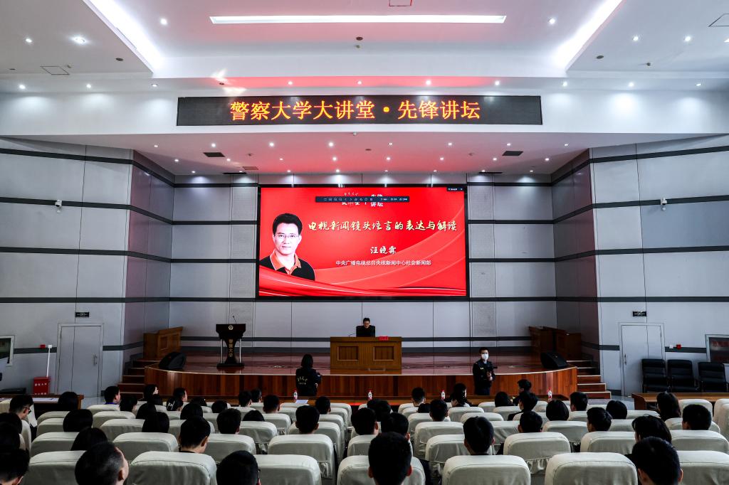 為進(jìn)一步提高廣大學(xué)生記者和攝像愛好者的技術(shù)水平和藝術(shù)素養(yǎng),豐富廣大學(xué)生課余文化生活,營(yíng)造濃厚的校園文化氛圍,3月15日下午,警察大學(xué)邀請(qǐng)?jiān)醒霃V播電視總臺(tái)央視新聞中心社會(huì)新聞部汪曉霖老師以《電視新聞鏡頭語言的表達(dá)與解讀》為題作專題講座。學(xué)生記者團(tuán)成員及攝像愛好者參加講座。