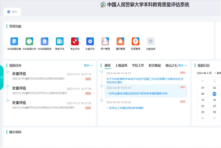 同步,發展規劃與評估處已在學校“統一身份認證平臺”部署了“本科教育質量評估系統”,該系統具備基本狀態數據采集分析、校內評估、其他高校最新校訊查詢等功能。學校印發的審核評估相關文件資料,將在該系統首頁[通知]欄集中展現,供廣大教職工下載查閱。