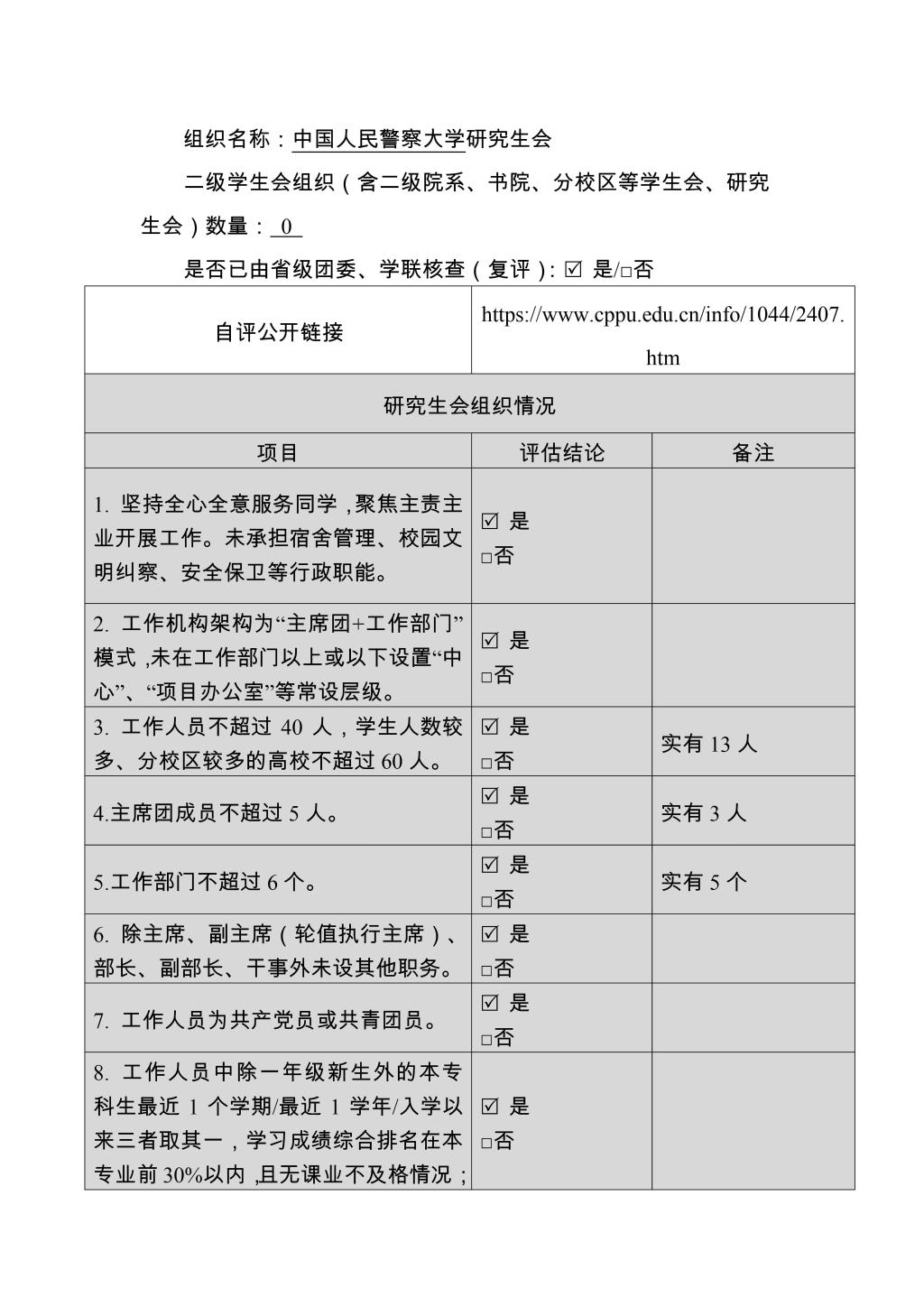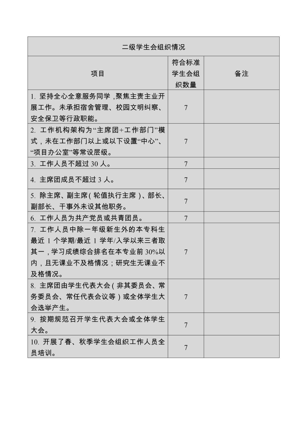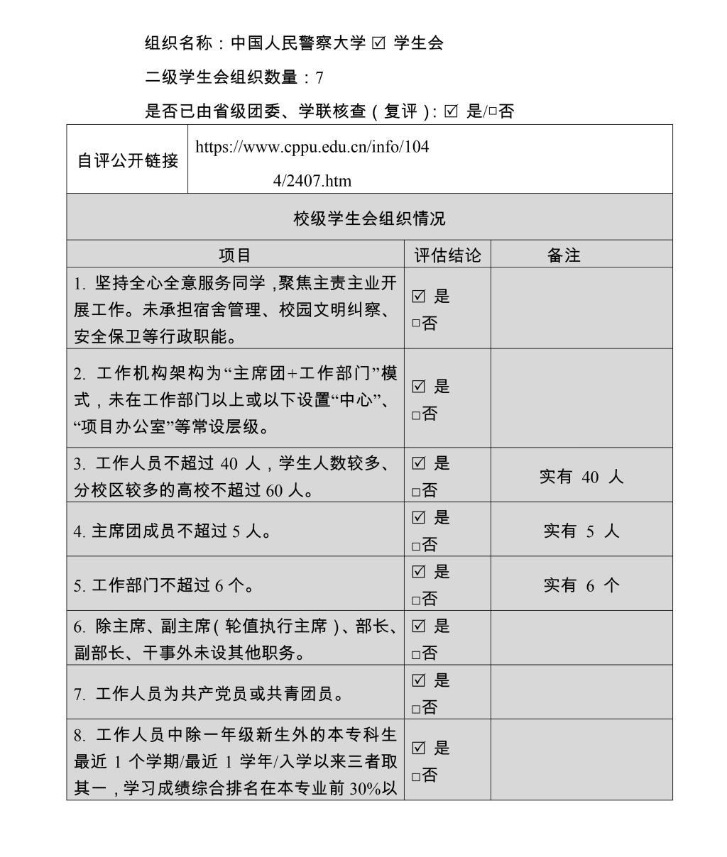 (一)校學生會、二級學生會組織改革自評表