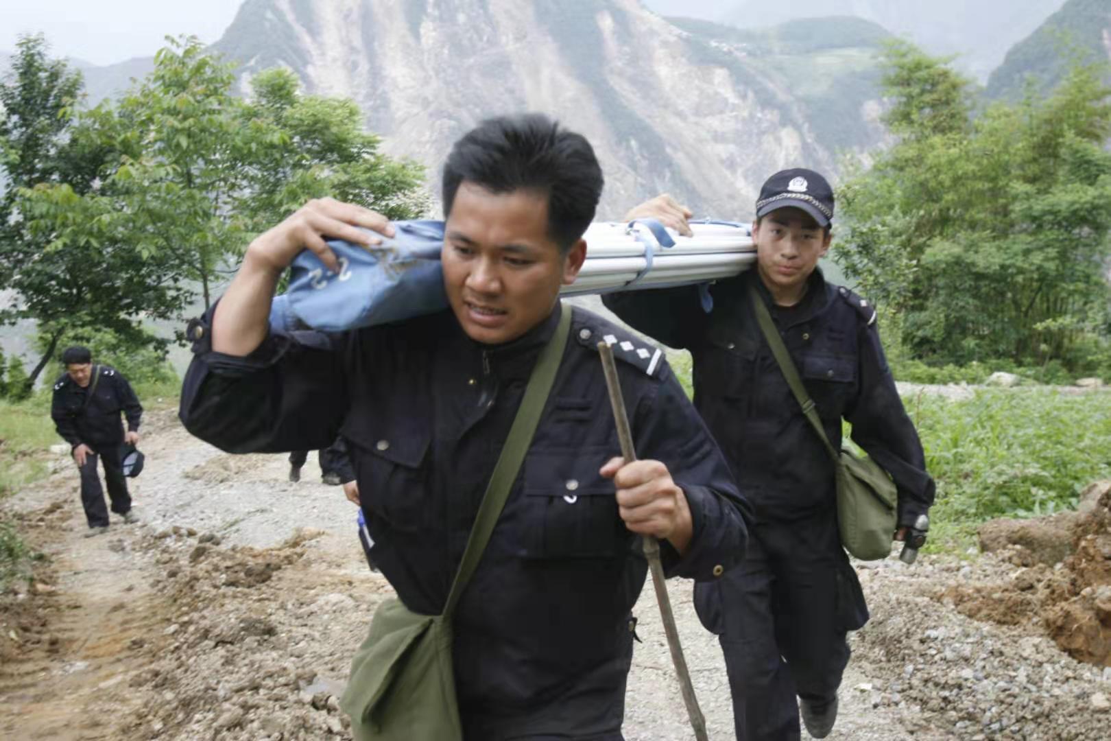 5月17日0時30分,駐地發生6.4級余震。轉移過程中,譚紀雄的左腳掌被亂石扎出一道長達3厘米的傷口,鮮血滲透了襪子。為防止感染,上級領導安排他撤離至都江堰治療,但譚紀雄堅決要求留下:“工作還沒開始,我不能下山。我是特警,這點小傷不算什么?!边B續55天的搶險救災中,譚紀雄一刻也沒有停下自己的腳步。