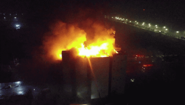 新元大道特勤消防救援站3車21人作為首批救援力量趕到現場,此時火勢已經蔓延至頂樓,加之燃燒物質多為PVC材料,導致火勢異常猛烈。更令人擔憂的是,廠房一樓儲存了30余噸氫氟酸及10余噸硫酸,二樓儲存了250升氟化氫銨蝕刻液等易燃易爆危險化學品。