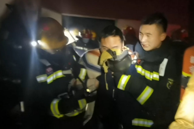 作戰經驗豐富、曾參加過1200余次滅火救援戰斗的劉佳明立刻組織4名消防員成立內攻偵查小組,穿戴好個人防護裝備在水槍的掩護下率先進入內部進行首次偵查,在西側入口進入內部后,發現左側區域完全封堵,此時劉佳明帶領隊友撤出;第二次整備完全后,又一次進入內部偵查,此時他們一行進入右側樓梯間,在能見度只有20厘米的樓道往上摸索前行,一邊鋪設救生照明線、水帶,到達三樓左側入口,偵查發現通道門被鎖住了。此時,劉佳明空氣呼吸器發出“滴滴滴”的報警聲,出于安全考慮,劉佳明和隊友們不得不返回更換空氣呼吸器。