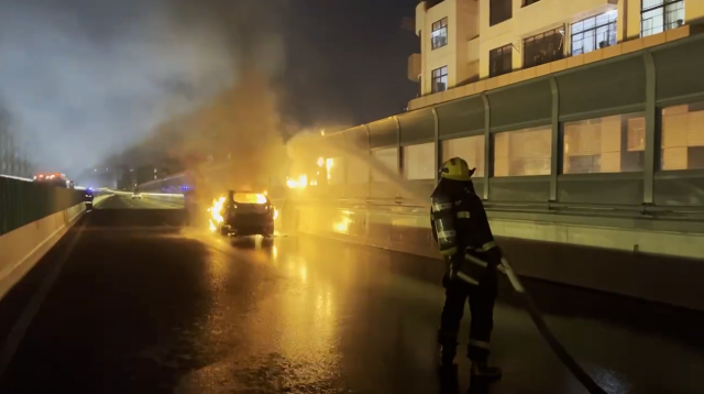 22時43分,火被撲滅。為防止復燃,消防救援人員繼續對車輛內部及高架護欄出水降溫,22時46分,確認無復燃可能,將現場移交給交警后,消防救援人員撤離現場。