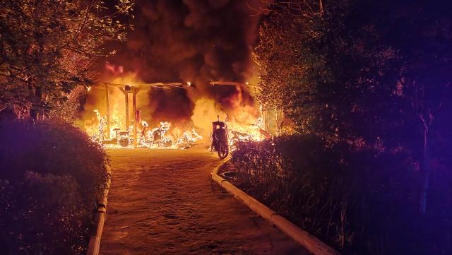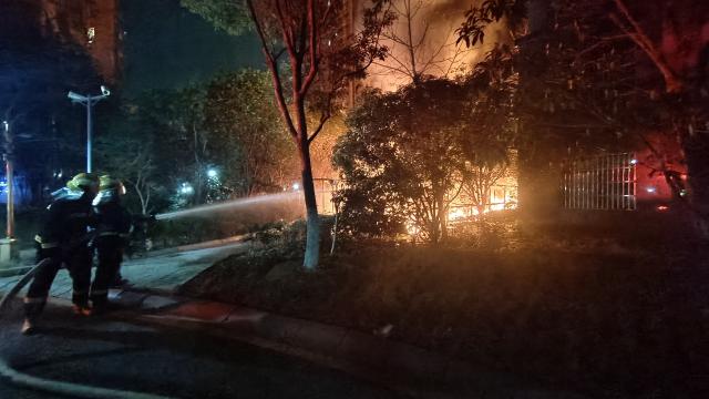 2月28日凌晨2時59分,南昌市奧克斯盛世華庭小區一戶外電動自行車棚發生火災。