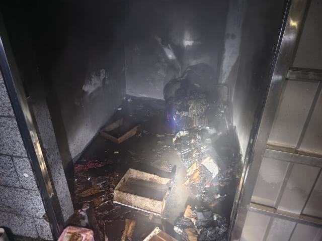 消防救援人員到達后,經過偵查發現起火建筑為一棟7層樓房,著火點為一樓的一間柴火間,柴火間內主要燃燒物質為紙箱、書籍、桌子等雜物,只見著火房內火光沖天,煙霧不斷從柴火間內冒出,柴火間外還停放了幾輛電動車,確認無人員被困。根據現場情況,消防救援人員立即出1支水槍控制火勢。19時35分,經過10分鐘的撲救,火被撲滅。