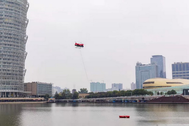 我國是地質災害高發國家,在地震、洪水、泥石流等大型災害事故搶險救援中,現有消防無人機受載荷小和滯空時間短的限制,其應用多局限于現場視頻偵察和通信信號中繼傳輸,缺少可長距離進行物資器材空中輸送和搶險救援作業的裝備。該項目研發的另一項成果——獵鷹無人機搶險救援綜合裝備填補了這個空白。該裝備通過搭載多種搶險救援模塊,可在復雜環境人員被困場景下執行水域、山岳救援任務,可實施野外高空廣域照明,可在大型災害事故道路阻隔場景下執行多架次運輸和投放任務,最大載重量達到115KG,模塊化救援裝置操作便捷、組合靈活,適應多種救援場景,實現了消防救援隊伍空中物資運輸的自我保障。