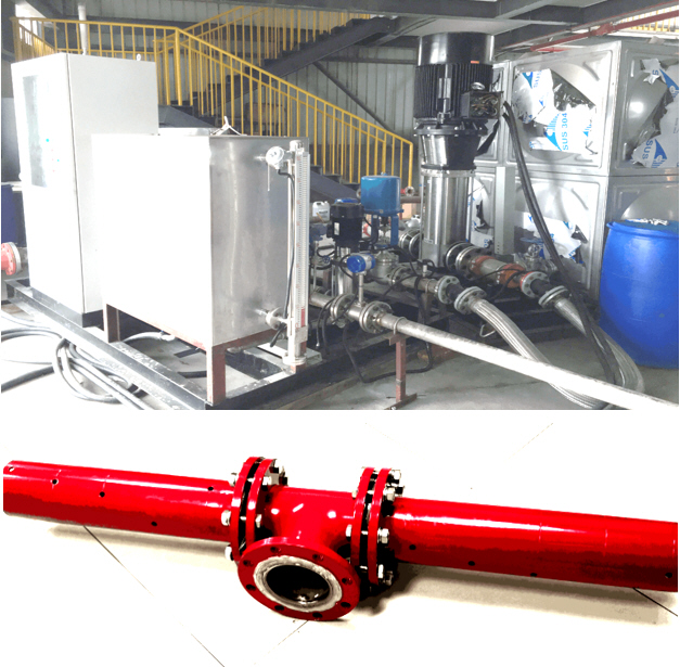 本成果針對10×104m3石化儲罐防火和實際工程設(shè)計需求,基于先進的壓縮空氣泡沫滅火技術(shù),形成了國內(nèi)首套石化儲罐固定式壓縮空氣泡沫滅火裝備,該裝備包括固定式壓縮空氣泡沫產(chǎn)生系統(tǒng)和浮盤式壓縮空氣泡沫環(huán)形施放裝置,該裝備泡沫溶液混合比、氣液比混合精度高,產(chǎn)生壓縮空氣泡沫性能良好,噴灑均勻,對泡沫的破壞程度小,泡沫穩(wěn)定性得到了大幅提升。對比低倍數(shù)泡沫系統(tǒng)密封圈實體火災(zāi)試驗,在泡沫供給強度減少48%的情況下,滅火時間至少縮短37.5%,滅火效能實現(xiàn)極大的提高。同時首次提出了石化儲罐固定式壓縮空氣泡沫系統(tǒng)工程應(yīng)用設(shè)計方法,該方法包括關(guān)鍵工程設(shè)計及滅火參數(shù)和基于泡沫流變特性的壓縮空氣泡沫流體力學(xué)計算方法,通過了大型石化儲罐密封圈實體火災(zāi)試驗驗證,真正滿足了實際工程設(shè)計需求。