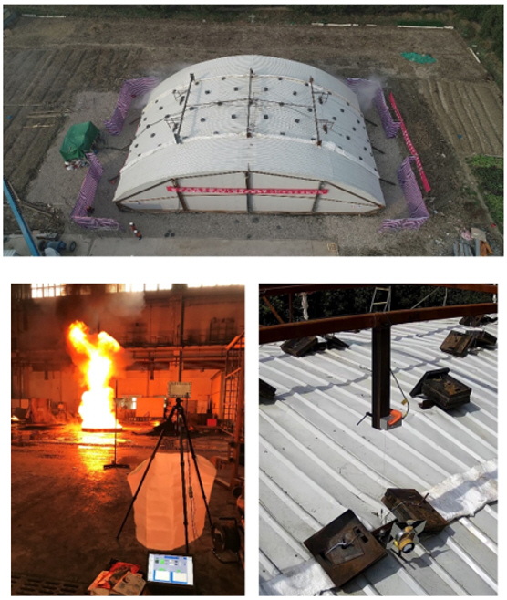 研究了大空間場所的火災中,屋蓋結構的坍塌(地面四周不易觀測、以發生撓度變形為主)。明確了需要解決在坍塌過程中,建筑周邊支撐墻體側向變形難以探測與量化的問題。