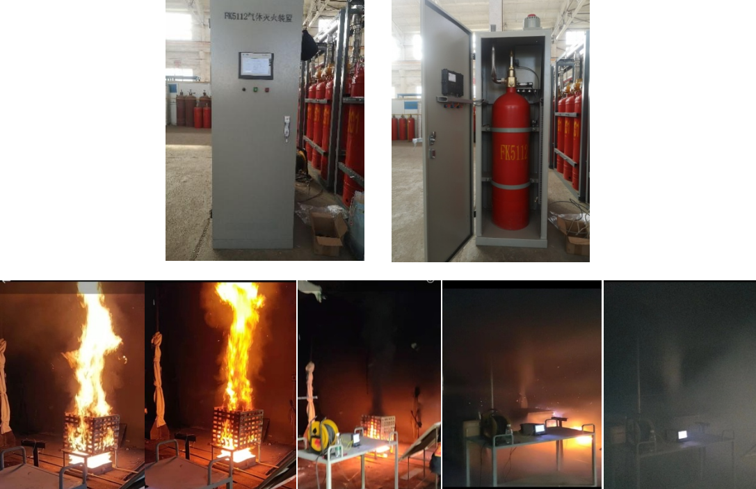依托“十三五”國家重點研發計劃課題“特殊結構建筑自動滅火關鍵技術及產品”,該成果基于局部應用實體火災試驗和仿真研究,形成了FK-5112局部應用設計關鍵技術,確定了平面火災和立體火災的噴頭臨界安裝高度、臨界流量、臨界壓力和噴放時間等局部應用關鍵技術參數,解決了裝置材料的相容性評價、充裝工藝、滅火濃度測試等工程化應用過程中的系列基礎難題,以及FK-5112等高沸點氣體滅火劑低壓大流量霧化噴頭及局部應用設計難題,實現了FK-5112裝置從小型裝置應用到中型裝置(柜式級)的應用突破。