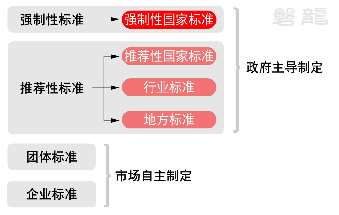 “標準”是指農業、工業、服務業以及社會事業等領域需要統一的技術要求。政府主導制定的標準有國家標準、行業標準、地方標準。其中,國家標準分為強制性國家標準和推薦性國家標準,行業標準和地方標準均屬于推薦性標準。