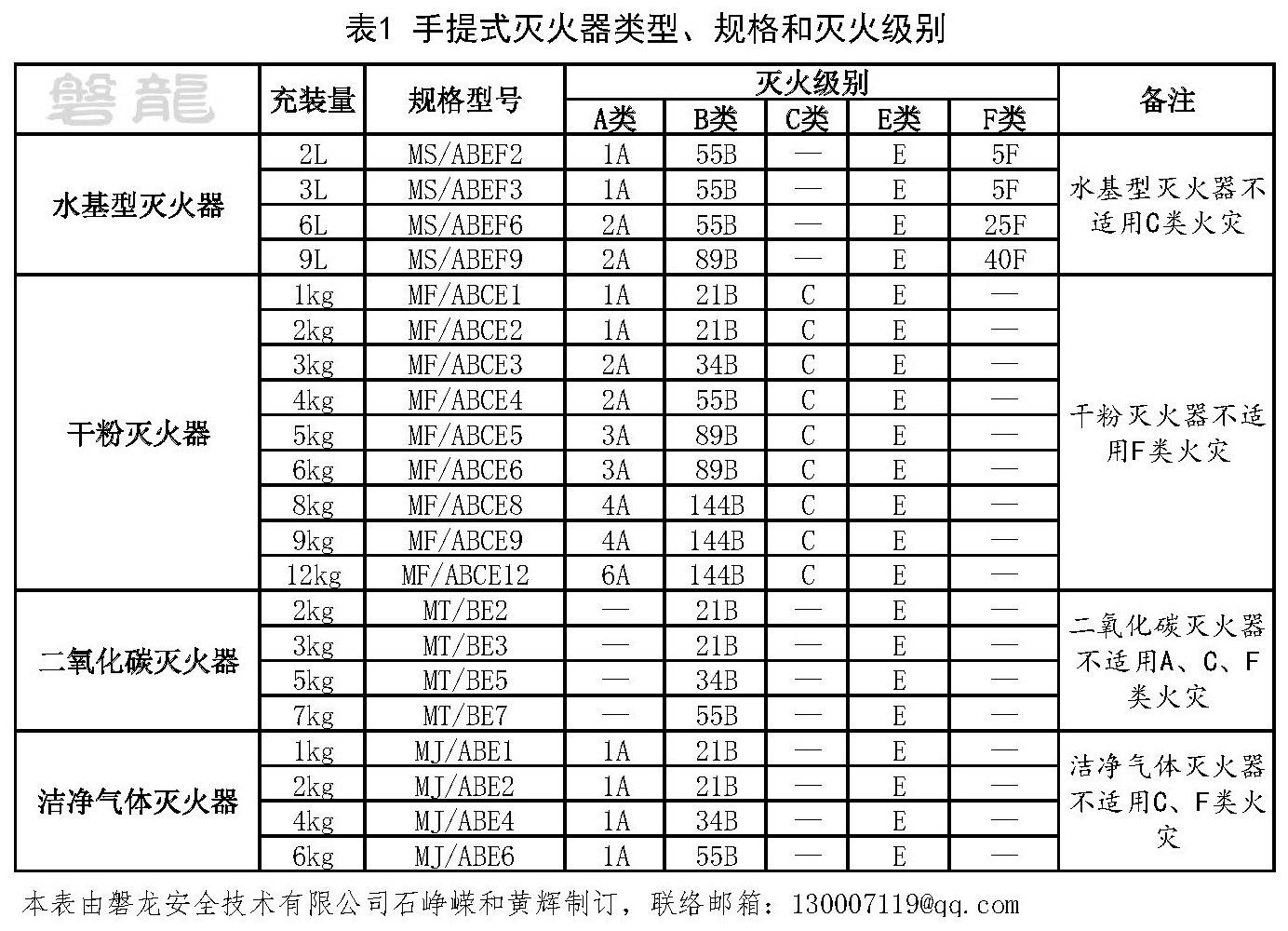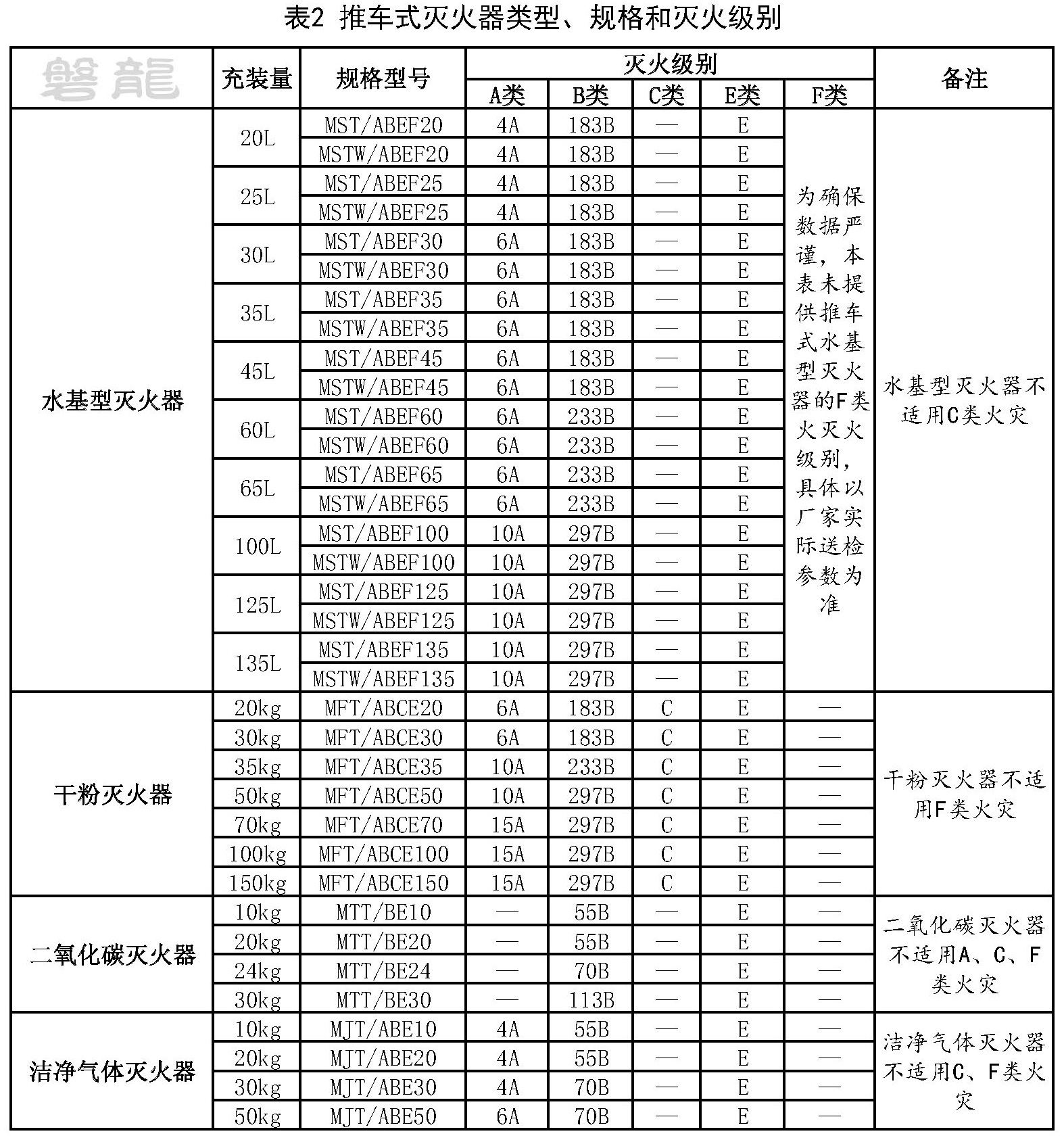 滅火器類型、規(guī)格和滅火級別,以及適用火災(zāi)類別,參見表1、表2、表3。→高清PDF下載