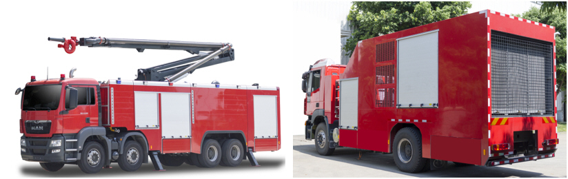 該成果水泵流量10000 L/min,氣體流量55m3/min,壓縮空氣泡沫流量≥50000 L/min,最大射程≥100m,最大工作高度20m,水罐8000L,泡沫罐2500L。