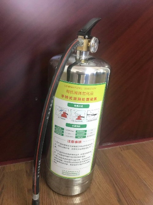 該裝置噴射出的吸收劑相比常用材料具有以下優勢:1.超強的吸收能力。檢測證明,該產品對常用有機液體的吸收倍率可達10倍左右。在處理泄漏事件時,由于其吸收量大,只需少量產品就能完成處理工作,節省人力物力。2.吸收范圍廣。能吸收幾乎所有的液體有機化學品,包括汽油、苯類、脂類、酮類等各類危險液體有機化學品。3.吸收速度快。本材料吸收極快,一般情況下,能在幾分鐘內吸收至飽和狀態。