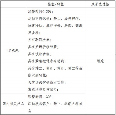該成果已通過國家消防裝備質量監督檢驗中心的委托檢驗,該成果適用于滅火救援現場戰斗人員佩戴使用。